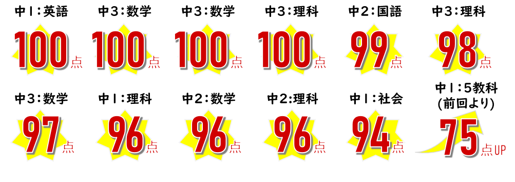 ココテラスでは、定期テストで頑張った生徒を毎回表彰しています。以下はその一部です。